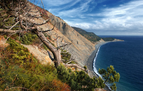 | Через 8 километров от Большого Утриша расположено ещё одно заповедное место - Малый Утриш. На Малом есть сказочное место – закрытая бухта и яхт-клуб. Здесь вы можете арендовать яхту или катер. Малый Утриш – одно из редких мест Черноморского побережья курорта Анапа, куда не добралась цивилизация. Море, солнце, горы, лес и ничего лишнего – здесь человек в полной мере ощущает гармонию первозданной природы. Плюсы удаленного расположения Малого Утриша от популярных мест отдыха Краснодарского края познаются на пляже: днем здесь малолюдно, морская вода прозрачна, по вечерам тихо и спокойно. Субтропический микроклимат дополняют растущие на склонах гор целебные хвойные и лиственные деревья, наполняющие воздух свежестью и удивительным ароматом. В Малом Утрише действуют две базы отдыха, которые расположены в тенистой дубовой роще в двадцати метрах от Черного моря. Сюда приезжают отдохнуть от городского шума и суеты. Особенно ценят это место любители "дикого отдыха", рыбалки, дайвинга и подводной охоты. Богатством подводного мира и разнообразием морской флоры и фауны Малый Утриш не уступает средиземноморским курортам. Добраться до Малого Утриша можно автомобильным транспортом через Абрау-Дюрсо со стороны Новороссийска (двенадцать км грунтовой дороги вдоль берега) или через горную дорогу со стороны Анапы от Сукко (18 км). Ближайшие к поселку железнодорожная станция и аэропорт находятся в Анапе. Также можно просто дойти до поселка пешим маршрутом от Большого Утриша вдоль берега моря. 8-километровая прогулка займет до полутора часов. По пути можно полюбоваться местной достопримечательностью – красивейшим пятиметровым водопадом с пресной водой. Поселок Малый Утриш, как и его "старший брат" Большой Утриш, является частью Дендрологического Морского Заказника, расположенного в двадцати км от Анапы и тридцати км от Новороссийска. Курортный сезон в Малом Утрише длится с середины мая по конец октября. Средняя температура воды летом 22°С, зимой 6°С. 280 солнечных дней в году. |